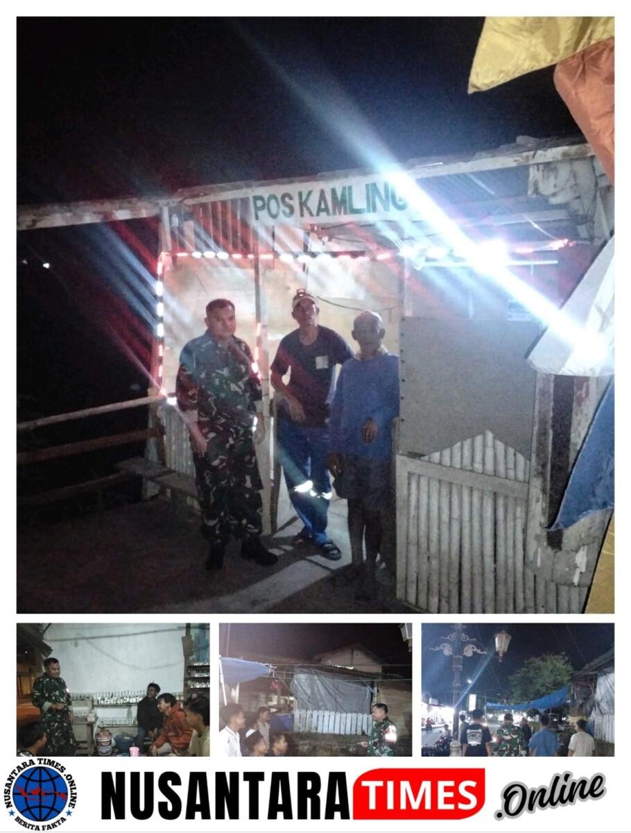 Pastikan Wilayah Aman, Babinsa Patroli Siskamling Bersama Warga